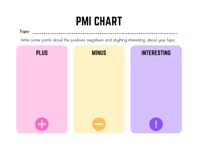 Par exemple : M. Hong hésite à changer d'emploi à l'étranger pour accepter un nouveau poste, et le changement d'emploi est risqué dans une certaine mesure, il a donc utilisé la liste PMI pour noter les avantages et les inconvénients auxquels il pourrait penser en acceptant un nouveau poste. Pensez de manière holistique.